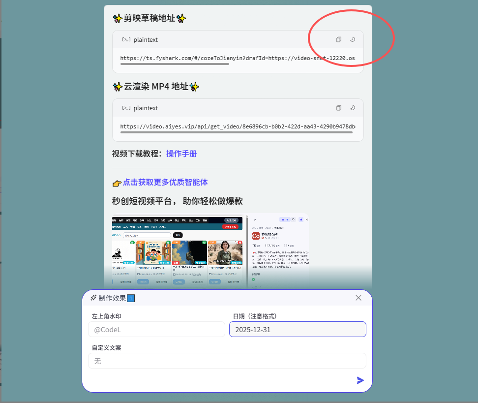 扣子对应的有两个小助手,大家一定在复制草稿链接的时候,看清楚对应的哪个小助手,然后复制黏贴草稿链接到对应小助手创建剪映草稿。
